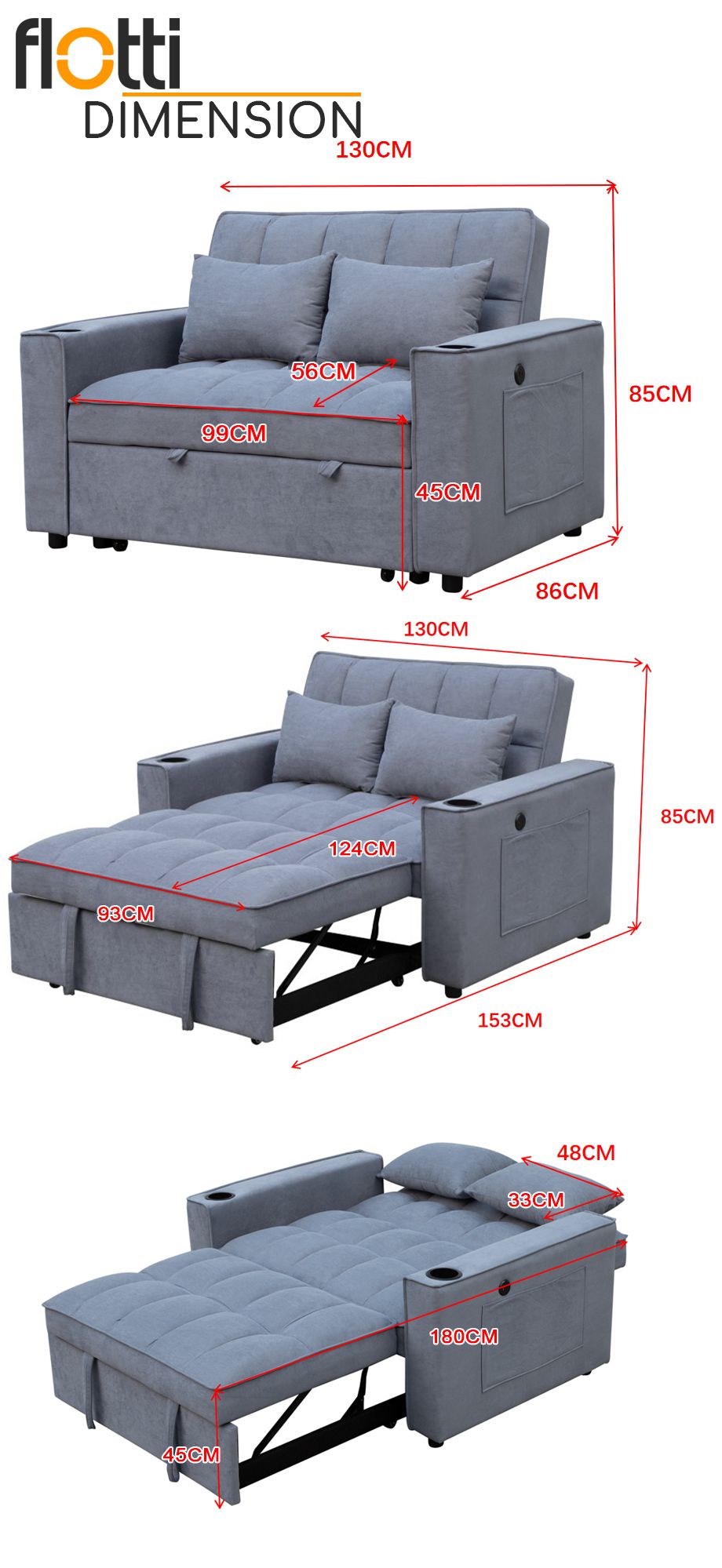 • Features: Pull-out sofabed w/ Cushions, Cup Holder & USB Charging Port