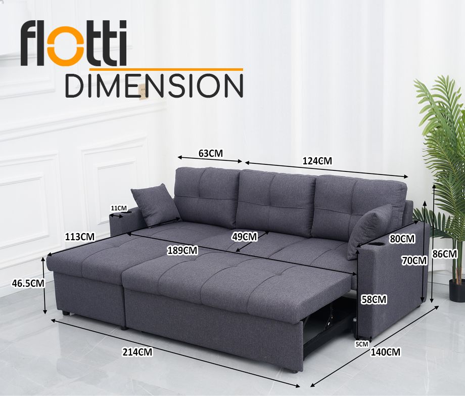 - Functions: Reversible/Convertible L-Shape Sofa with Pull-Out Bed, Storage
