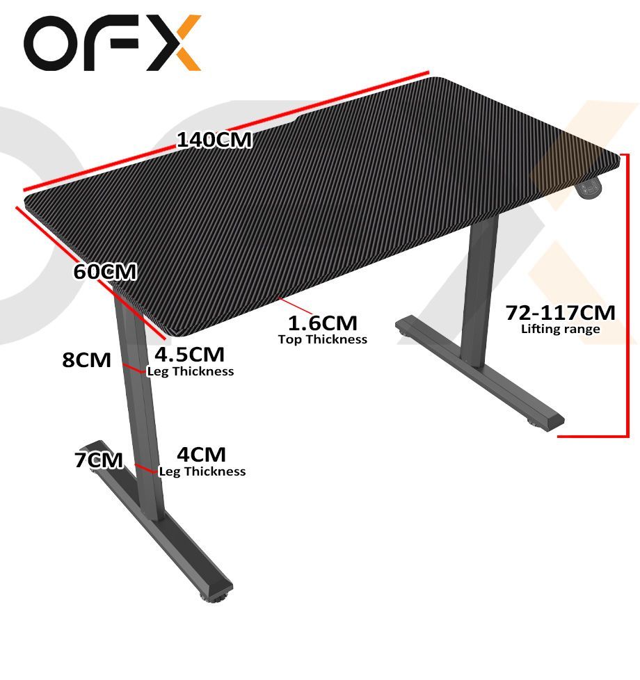 OFX Jabez 140 Office Gaming Electric Height Adjustable Single Motor Desk (140*60) Gaming Desk & Chair Set (Black, White)