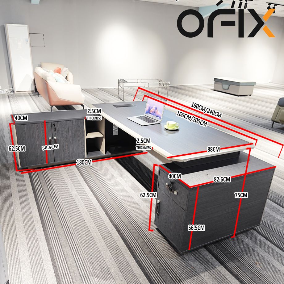 Ofix CEO Falco Desk Executive Table with Side Cabinet (Oak+Grey)