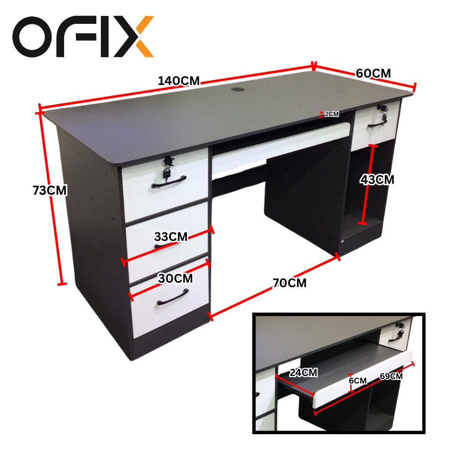 Ofix Desk 22 with Keyboard Holder, 4 Drawers w/ 2 Keys