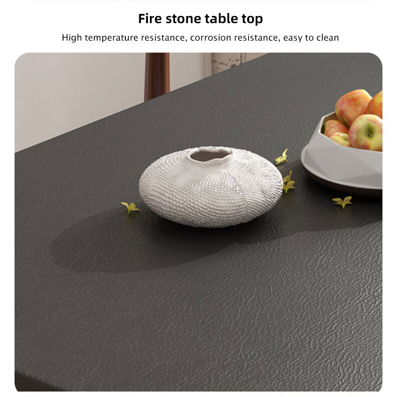 - Table: Solid Wood Frame Support/ Fire Stone Top.