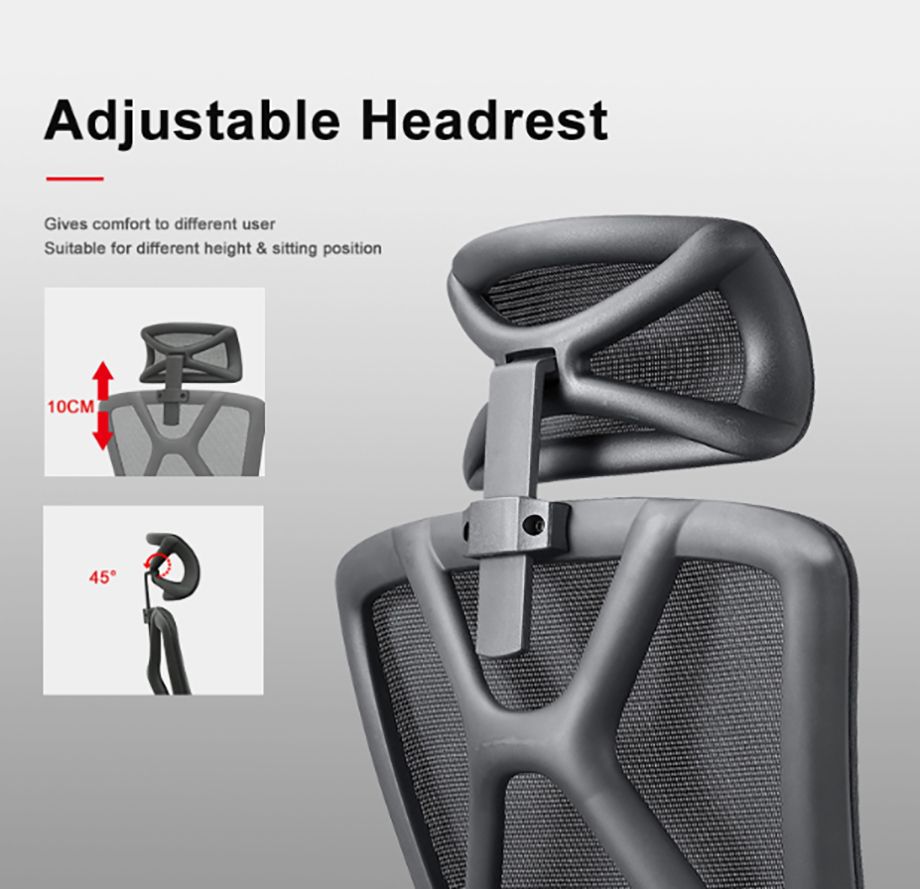 - Adjustable Headrest: Up to 10CM Height/ Rotate up to 45°