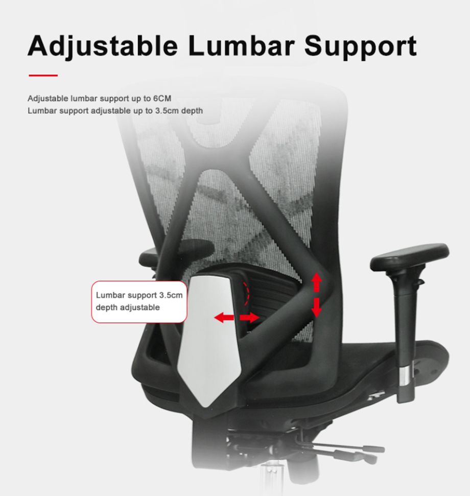- Adjustable Lumbar Support: Up to 6CM up/down, 3.5cm depth adjustable