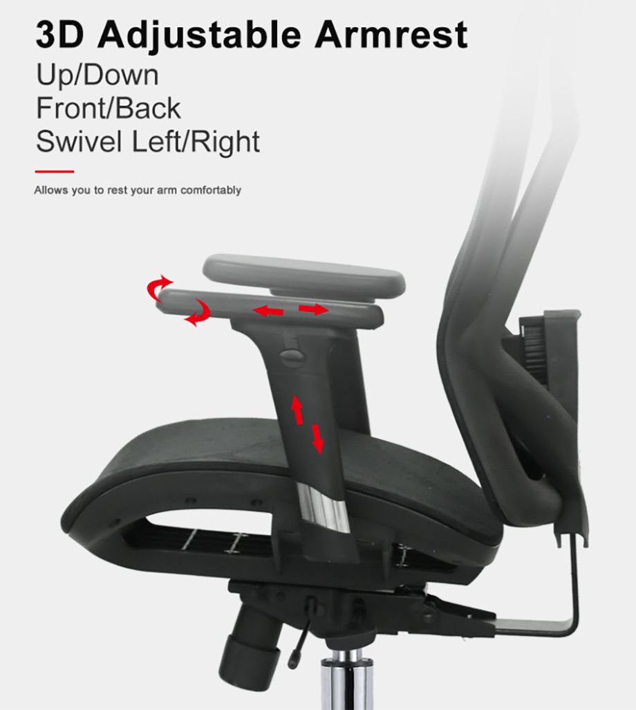 - Adjustable Armrest: 3D Armrest (Up/Down, Front/Back, Swivel Left/Right)