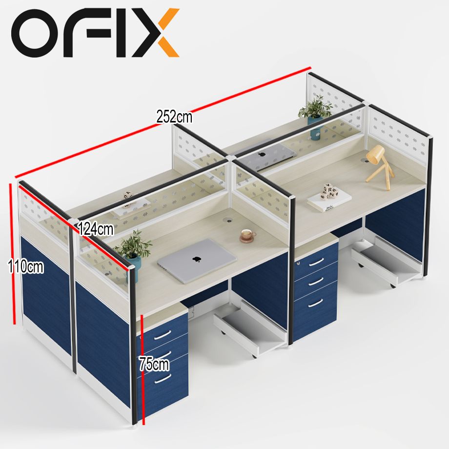 Ofix WS-780 4-Seater Workstation Partition Cubicle w/ Drawer (Maple, Blue)