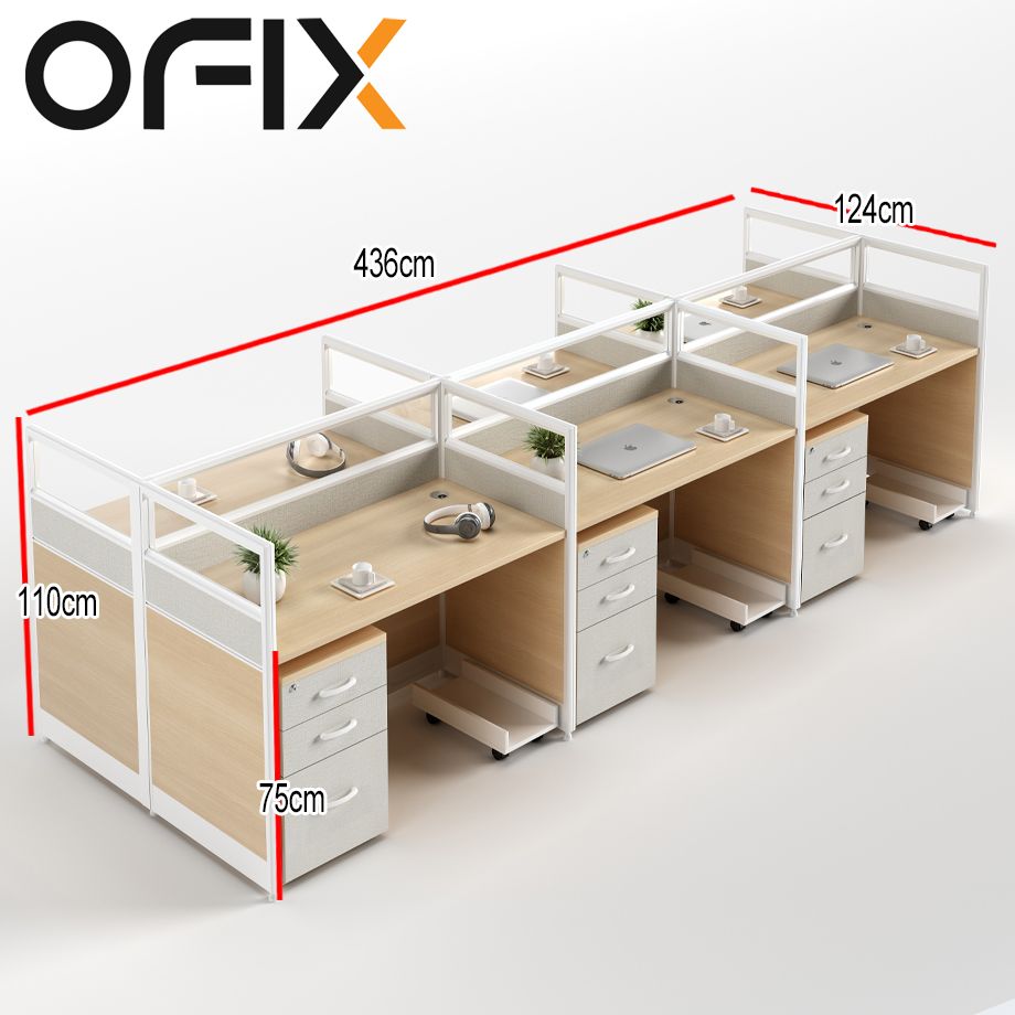 Ofix WS-880 6-Seater Workstation Partition Cubicle w/ Drawer (Maple)