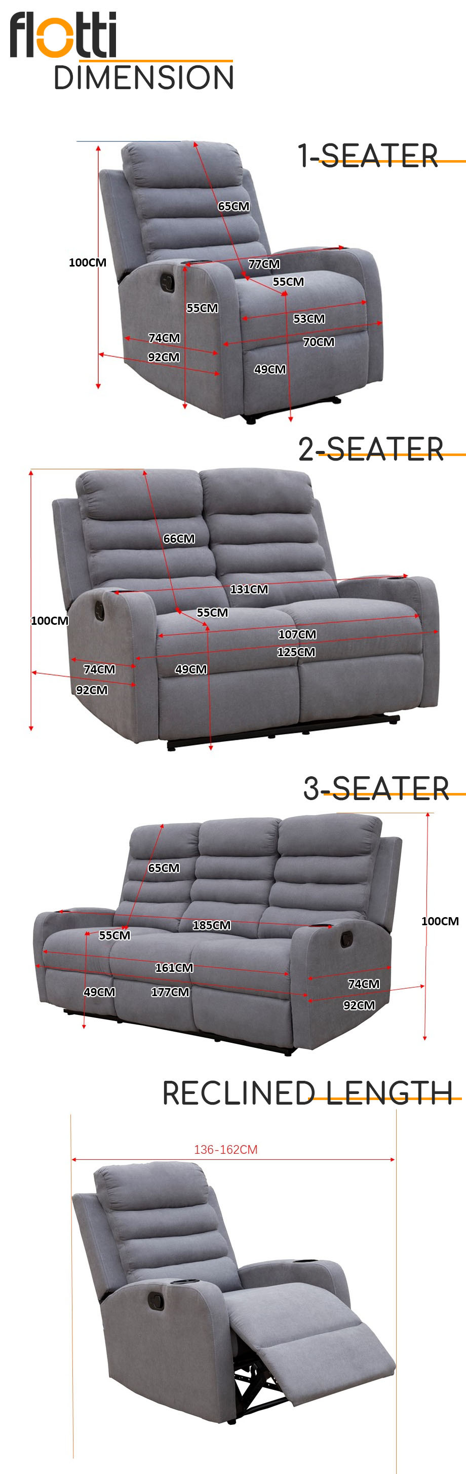 - Enya Manual Recliner 3-Seater: 2 Armrest with Cup Holder